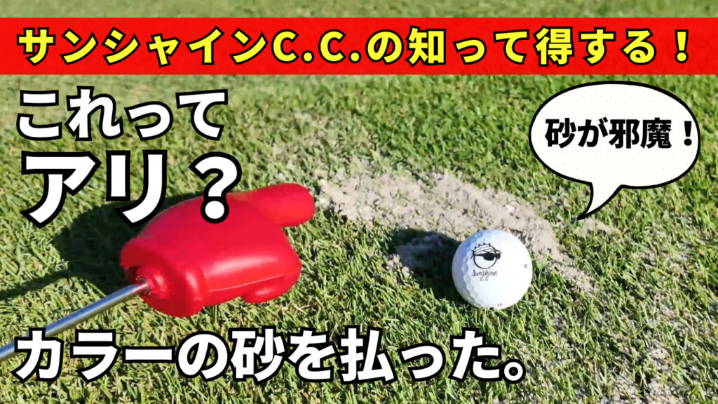 今回の動画では、バンカーショットでボールがカラーに止まった際に発生する砂の扱い方を解説。