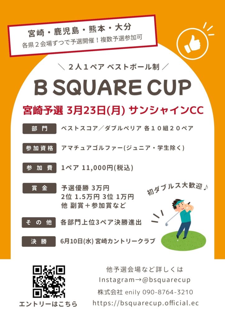 「B SQUARE CUP」予選会 が宮崎サンシャインカントリークラブで開催いたします。