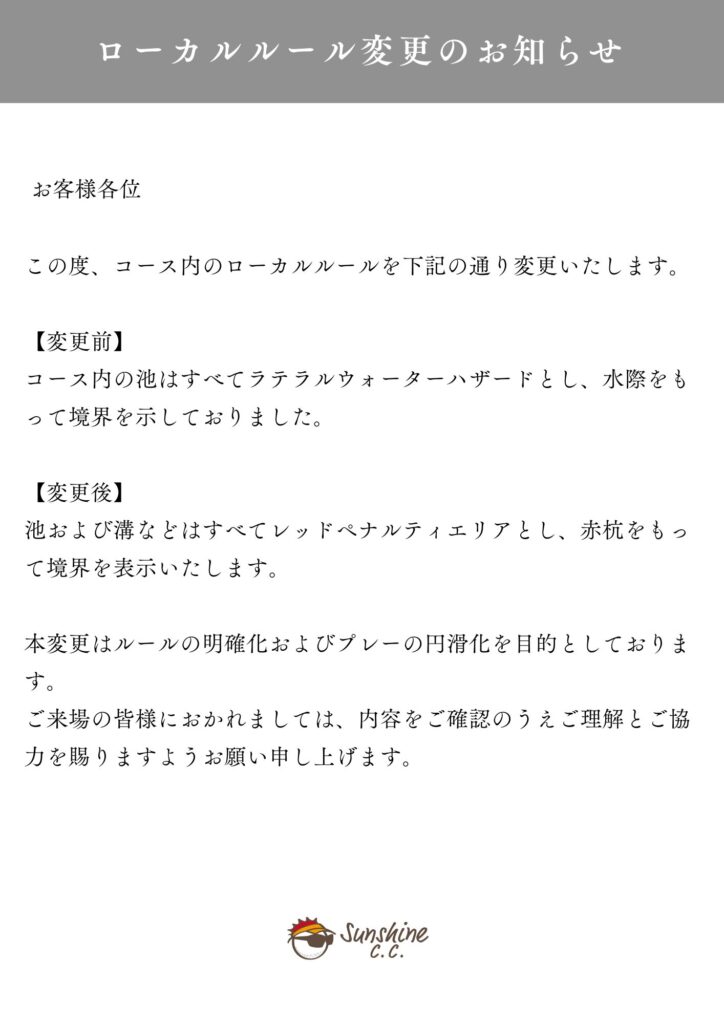 ローカルルール変更のお知らせ(2026年5月1日より)
